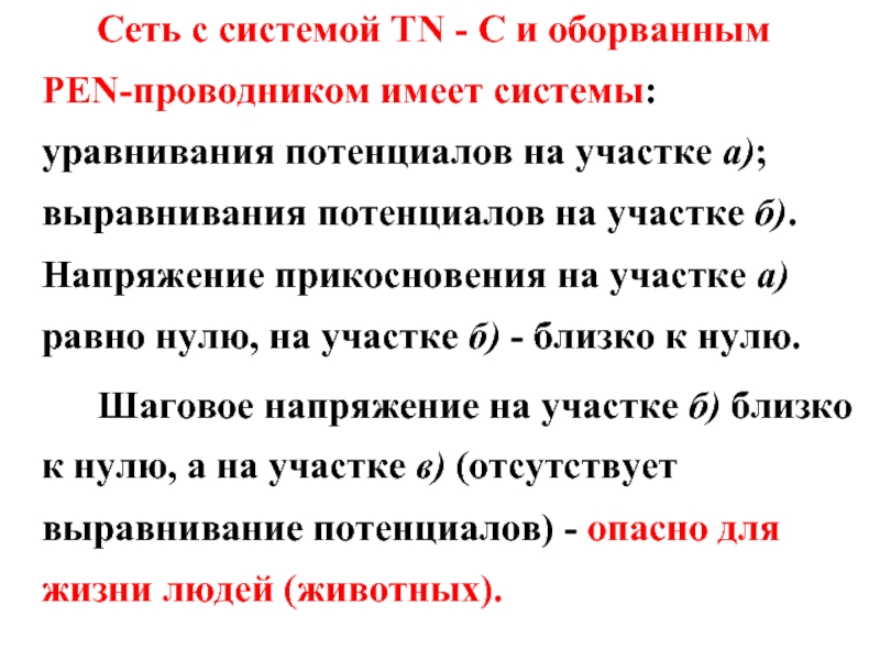 Слайд 12 Сеть с системой TN - C и оборванным PEN-проводником имеет системы: