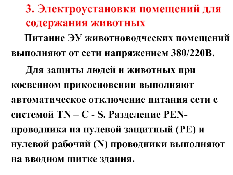 Слайд 26 3. Электроустановки помещений для содержания животных