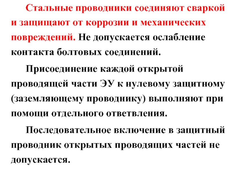 Слайд 25 Стальные проводники соединяют сваркой и защищают от коррозии и механических повреждений.