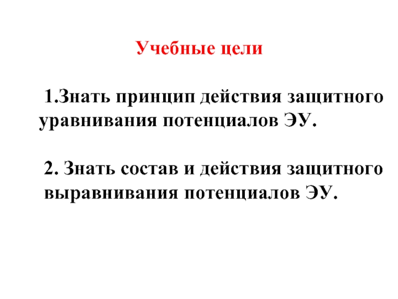 1.Знать принцип действия защитного уравнивания потенциалов ЭУ.