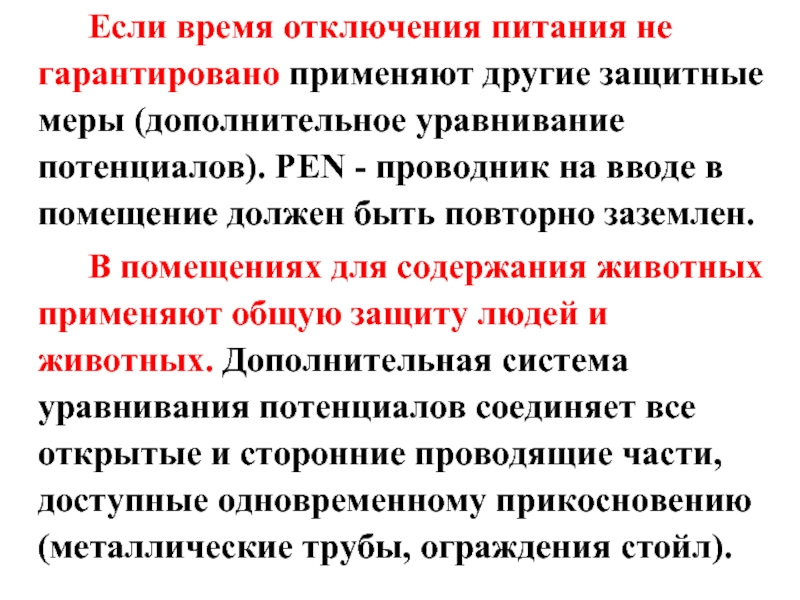 Слайд 29 Если время отключения питания не гарантировано применяют другие защитные меры (дополнительное