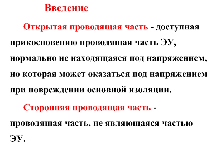 Открытая проводящая часть - доступная прикосновению проводящая часть ЭУ, нормально не