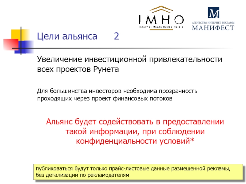 публиковаться будут только прайс-листовые данные размещенной рекламы, без детализации по рекламодателям