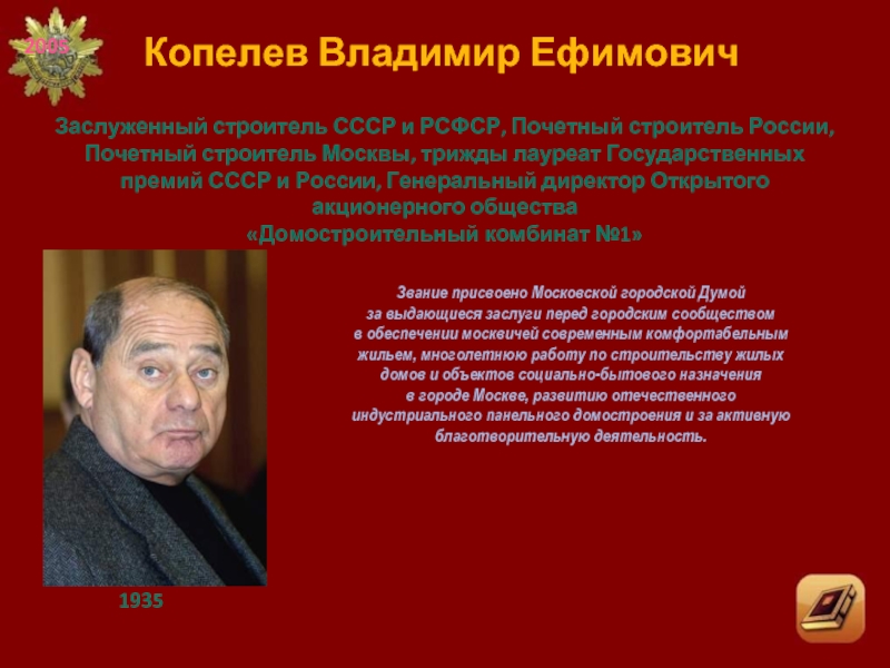 Герой Социалистического Труда, заслуженный работник транспорта Российской Федерации, генеральный директор акционерного общества «Первый автокомбинат»
