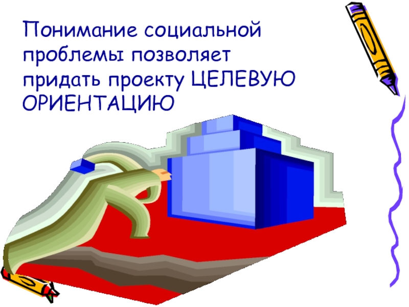 Слайд 18Понимание социальной проблемы позволяет придать проекту ЦЕЛЕВУЮ ОРИЕНТАЦИЮ