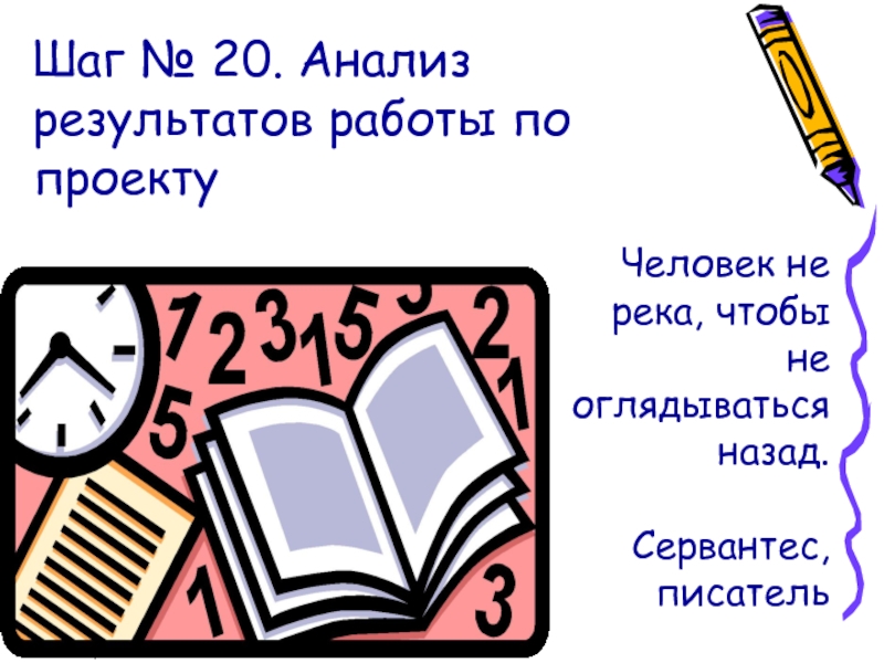 Слайд 50Шаг № 20. Анализ результатов работы по проекту