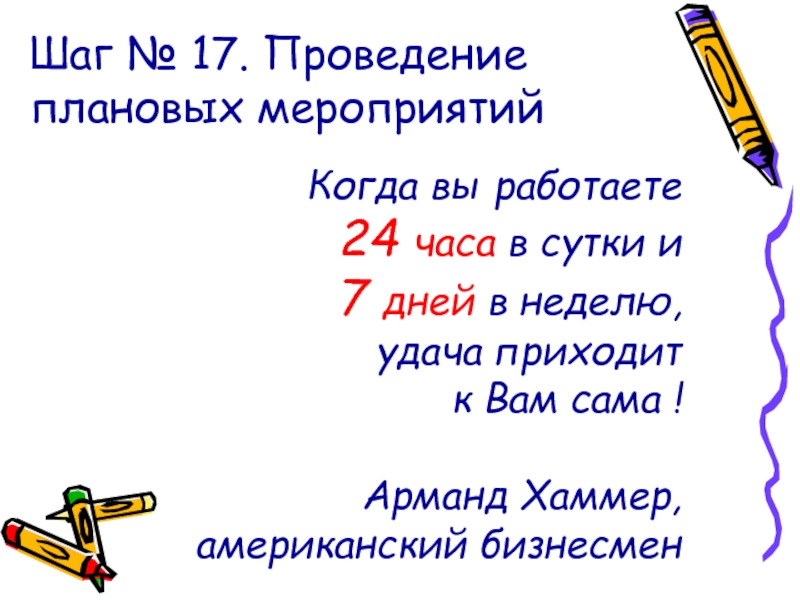 Слайд 46Шаг № 17. Проведение плановых мероприятий