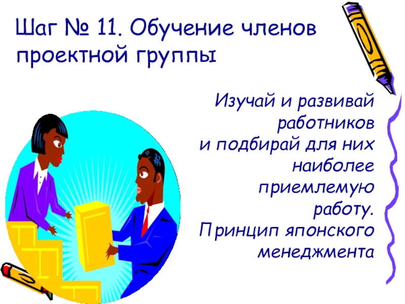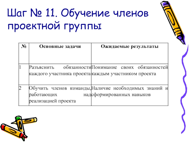 Слайд 38Шаг № 11. Обучение членов проектной группы