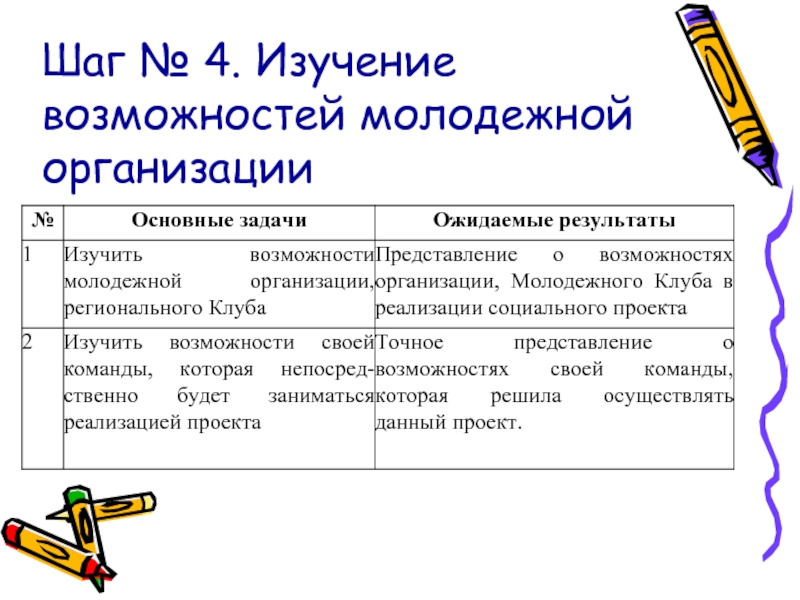 Слайд 21Шаг № 4. Изучение возможностей молодежной организации