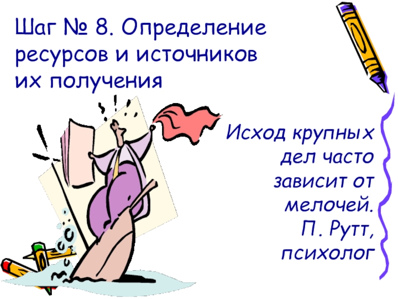 Слайд 32Шаг № 8. Определение ресурсов и источников их получения