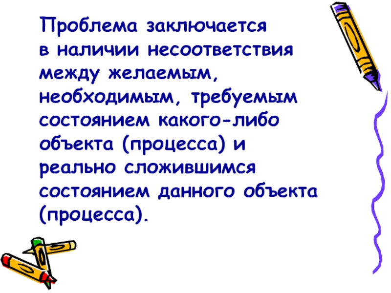 в наличии несоответствия между желаемым, необходимым, требуемым состоянием какого-либо объекта