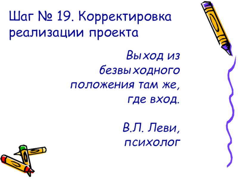 Слайд 48Шаг № 19. Корректировка реализации проекта