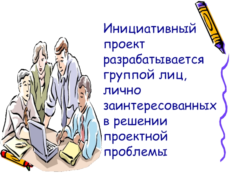 Слайд 11Инициативный проект разрабатывается группой лиц, лично заинтересованных в решении проектной проблемы