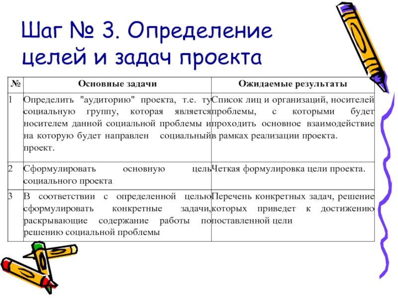 Слайд 19Шаг № 3. Определение целей и задач проекта