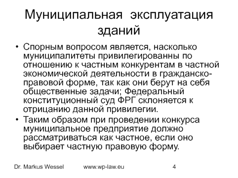 по отношению к частным конкурентам в частной экономической деятельности в гражданско-правовой форме, так как они берут на себя общественные задачи; Федеральный конституционный суд ФРГ склоняется к отрицанию данной привилегии.