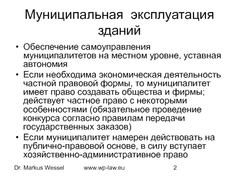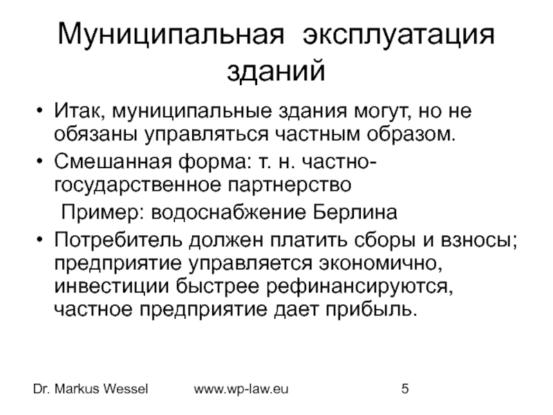 Муниципальная эксплуатация зданий осуществляется либо на частной,