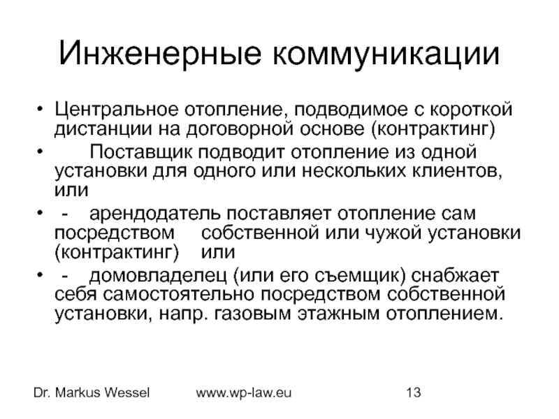 - арендодатель поставляет отопление сам посредством собственной или чужой установки (контрактинг) или