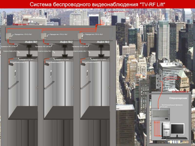 Принцип организации беспроводной системы видеонаблюдения в нескольких лифтовых кабинах: