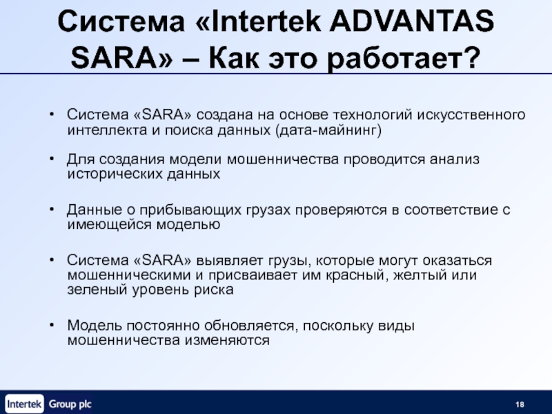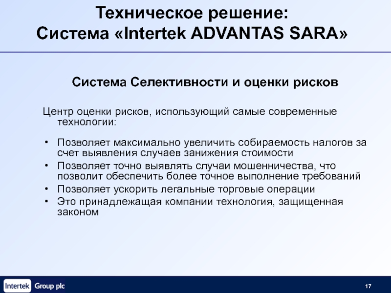 Техническое решение: Программное обеспечение «Intertek SARA», используемое для управления рисками