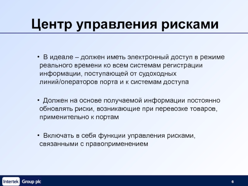 Должен на основе получаемой информации постоянно обновлять риски, возникающие при перевозке товаров, применительно к портам