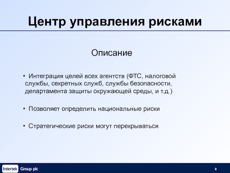 Интеграция целей всех агентств (ФТС, налоговой службы, секретных