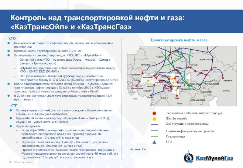 Совместный или единоличный контроль над крупнейшей в Казахстане сетью нефте- и газопроводов (общей протяженностью 19.9 тыс. км)