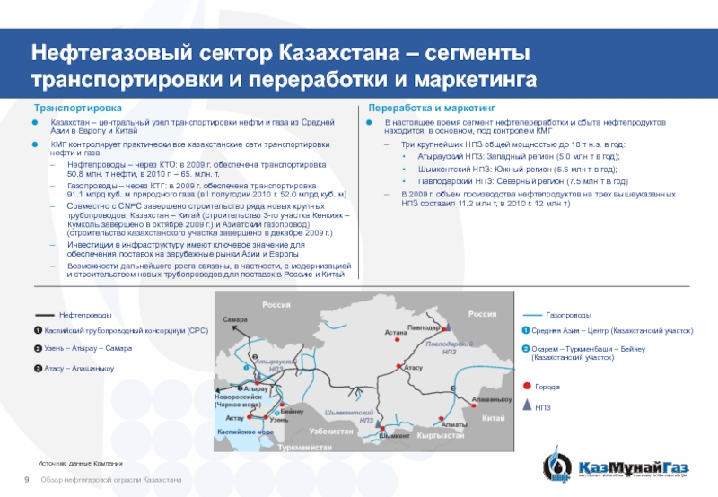 Совместный или единоличный контроль над всеми тремя НПЗ в Казахстане и двумя в Румынии (совокупная мощность 23.3 млн. т в год)