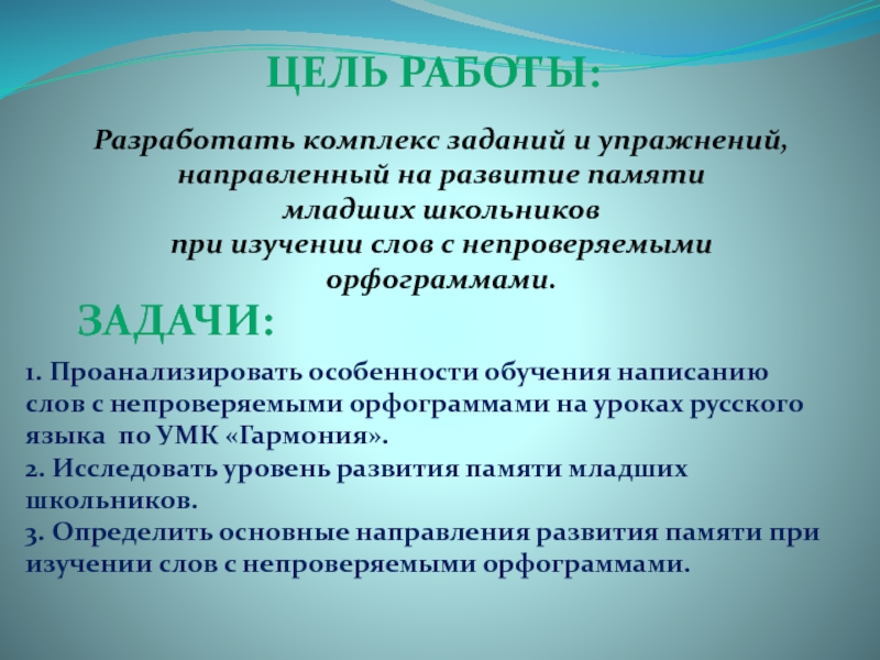 3. Определить основные направления развития памяти при изучении слов с непроверяемыми орфограммами.