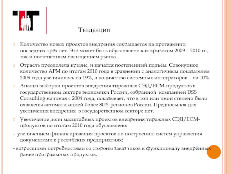 Увеличение доли масштабных проектов внедрения тиражных СЭД/ECM-продуктов по итогам 2010 года обусловлено: