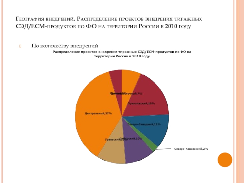 Количество новых проектов внедрения сокращается на протяжении последних трёх лет. Это может быть обусловлено как кризисом 2009 – 2010 гг., так и постепенным насыщением рынка.
