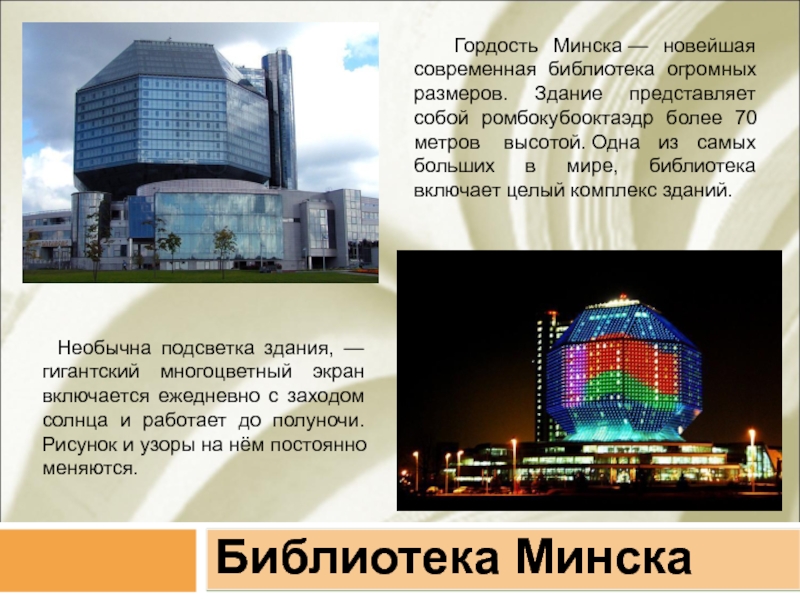 Гордость Минска — новейшая современная библиотека огромных размеров. Здание