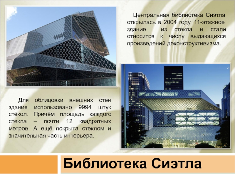 Центральная библиотека Сиэтла открылась в 2004 году. 11-этажное