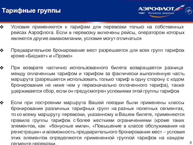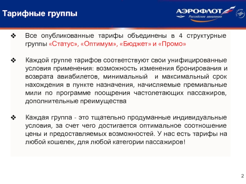 Слайд 1Тарифные группы ОАО «Аэрофлот»
