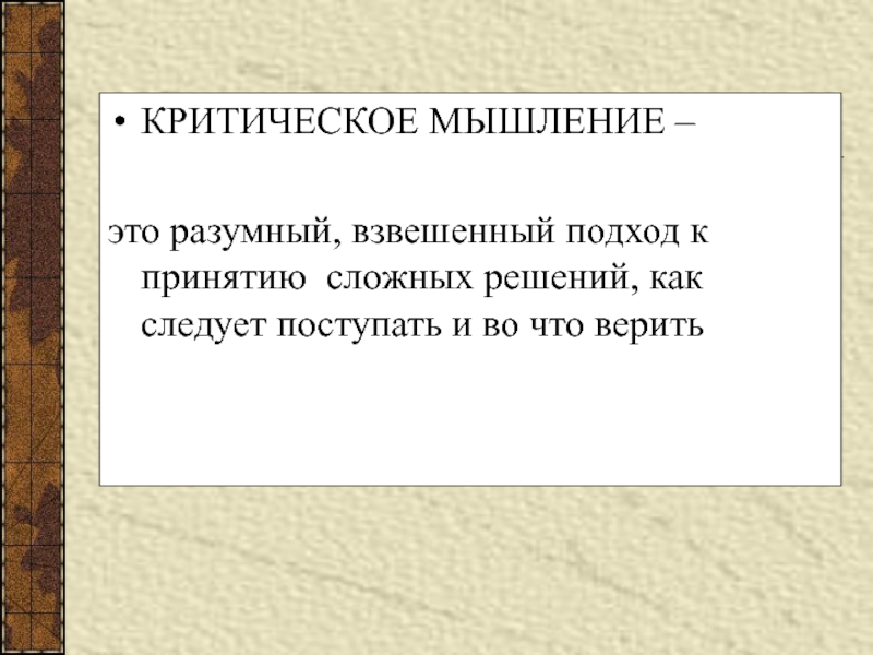 Слайд 2КРИТИЧЕСКОЕ МЫШЛЕНИЕ –