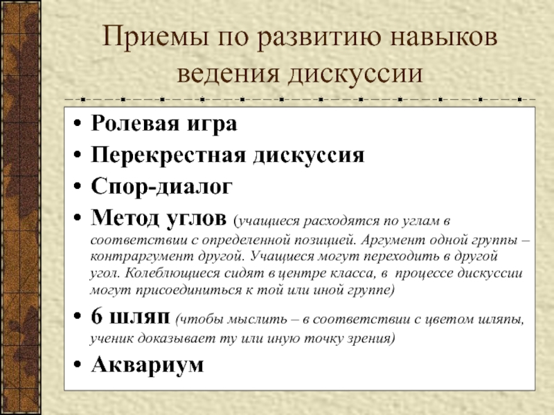 Слайд 39Приемы по развитию навыков ведения дискуссии