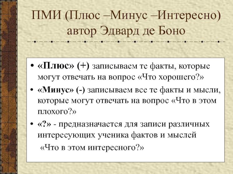 Слайд 26ПМИ (Плюс –Минус –Интересно)