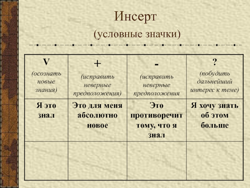 «Плюс» (+) записываем те факты,