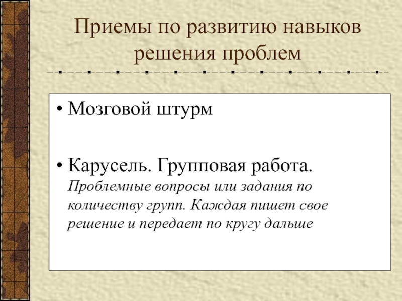 Слайд 38Приемы по развитию навыков решения проблем
