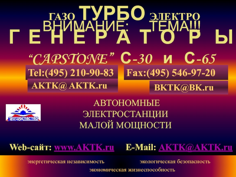 ГАЗО ТУРБО ЭЛЕКТРО Г Е Н Е Р А Т О Р Ы “CAPSTONE” С-30 и С-65