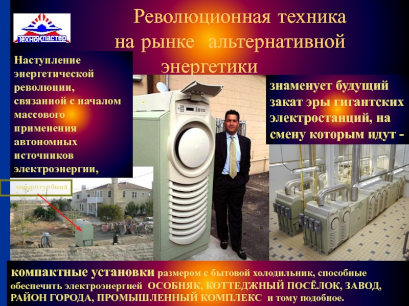 компактные установки размером с бытовой холодильник, способные обеспечить электроэнергией ОСОБНЯК, КОТТЕДЖНЫЙ ПОСЁЛОК, ЗАВОД, РАЙОН ГОРОДА, ПРОМЫШЛЕННЫЙ КОМПЛЕКС и тому подобное.