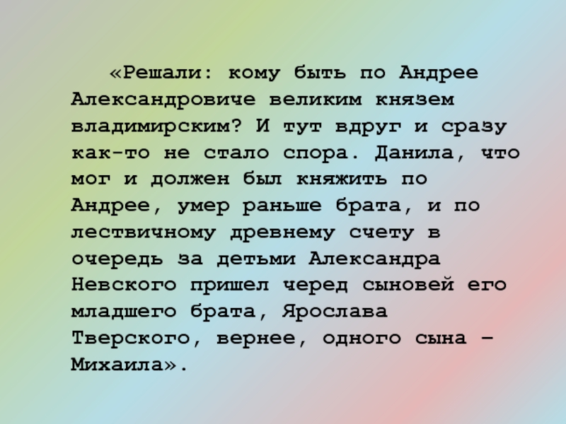 Слайд 20 «Решали: кому быть по Андрее Александровиче великим князем