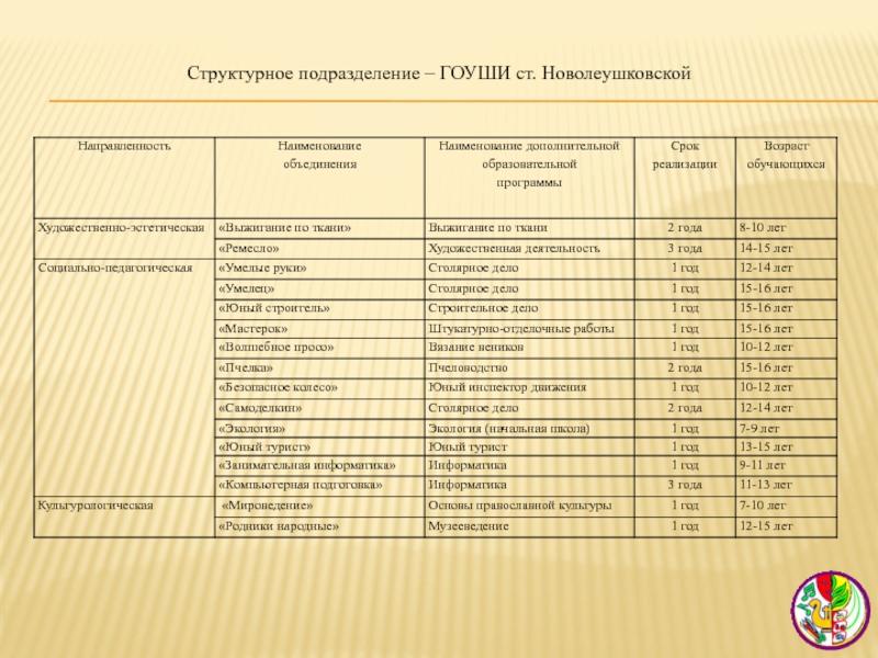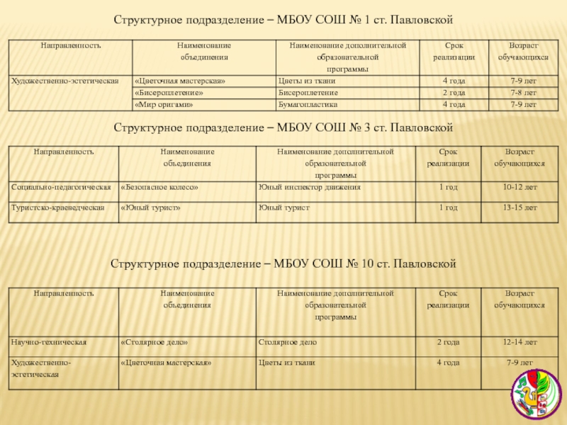 Структурное подразделение – МБОУ СОШ № 10 ст. Павловской