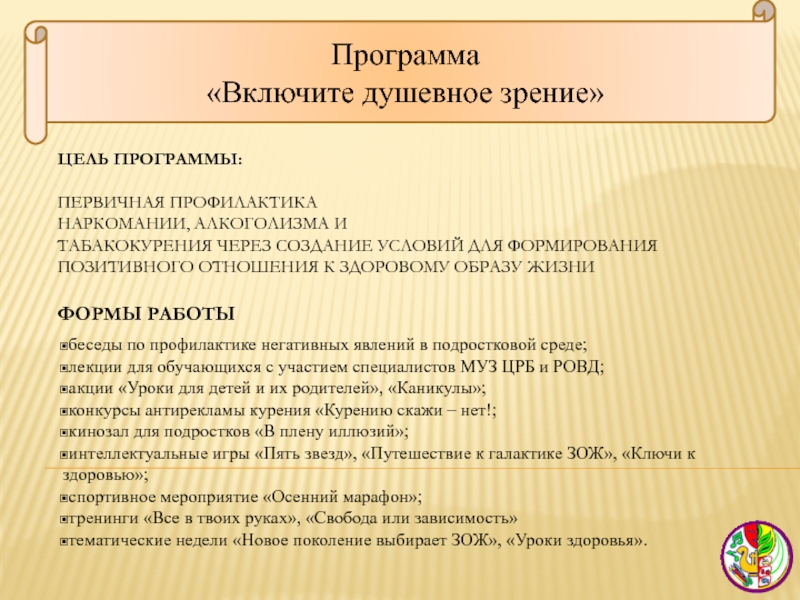 тренинги «Все в твоих руках», «Свобода или зависимость»