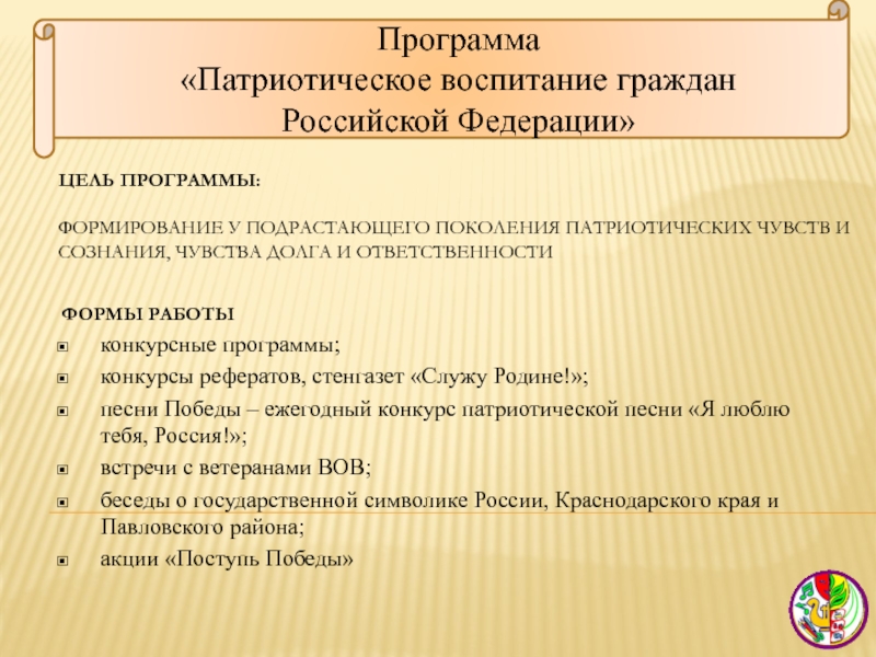 беседы о государственной символике России, Краснодарского края и Павловского района;