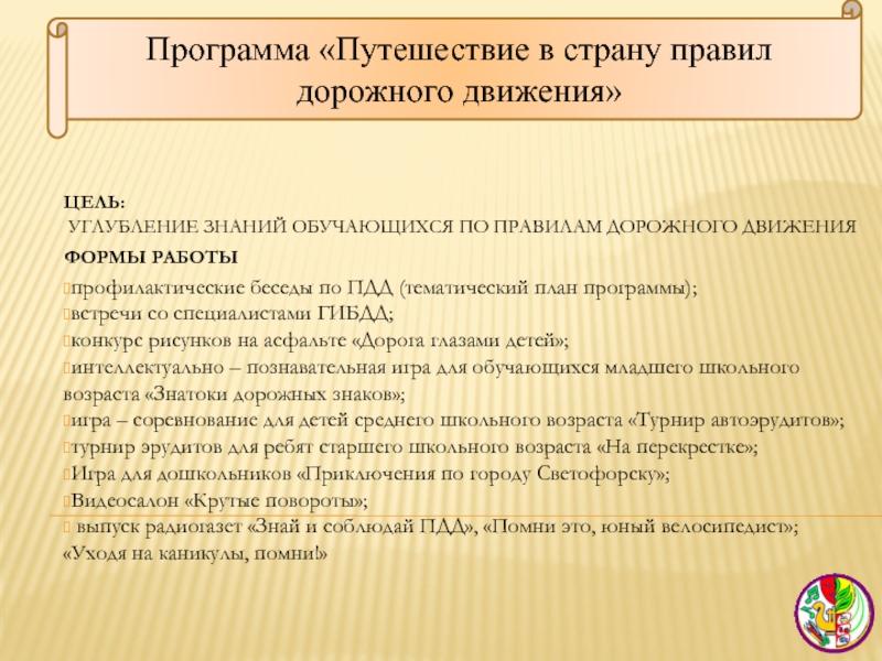 выпуск радиогазет «Знай и соблюдай ПДД», «Помни это, юный велосипедист»; «Уходя на каникулы, помни!»