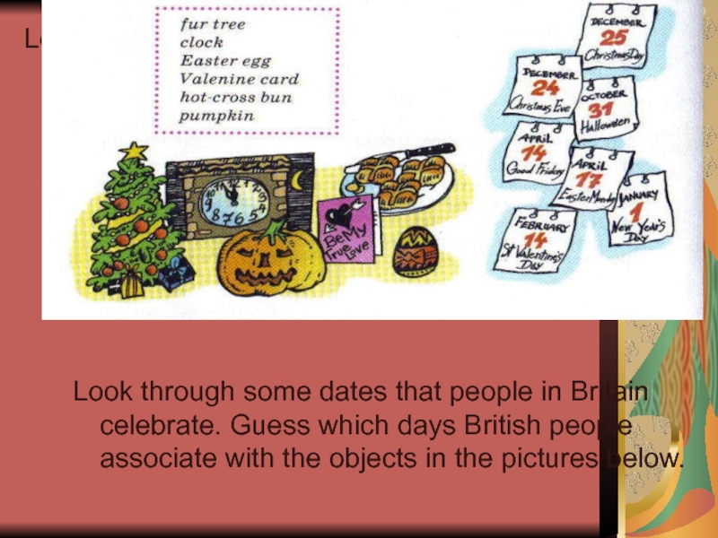 Look through some dates that people in Britain celebrate. Guess which days British people associate with the objects in the pictures below.