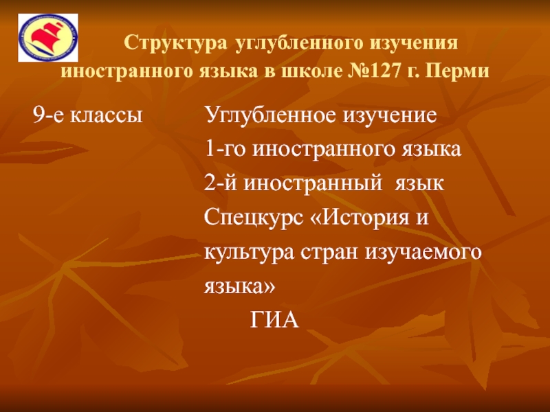 Структура углубленного изучения иностранного языка в школе №127 г. Перми
