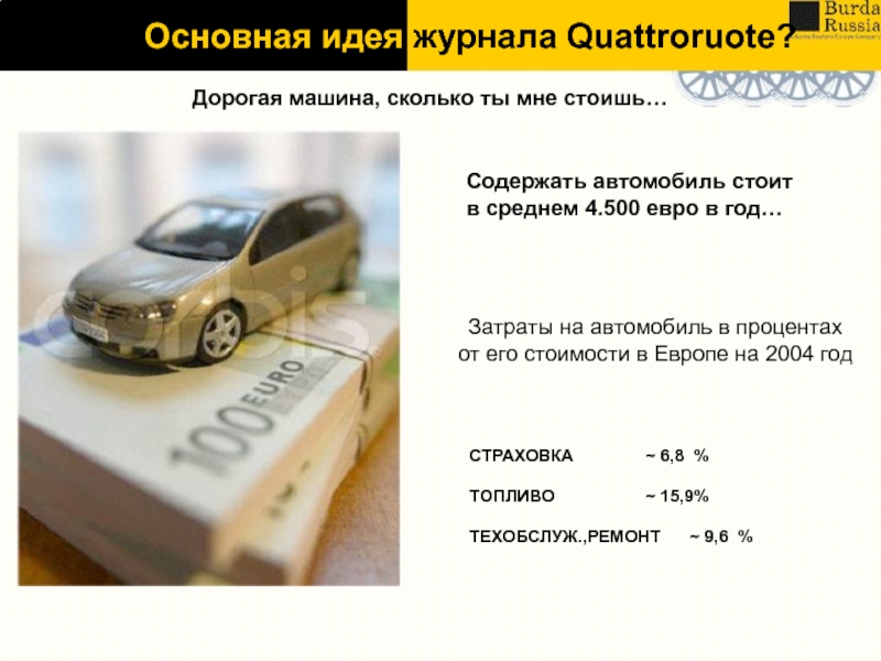 Затраты на автомобиль в процентах от его стоимости в Европе на 2004 год