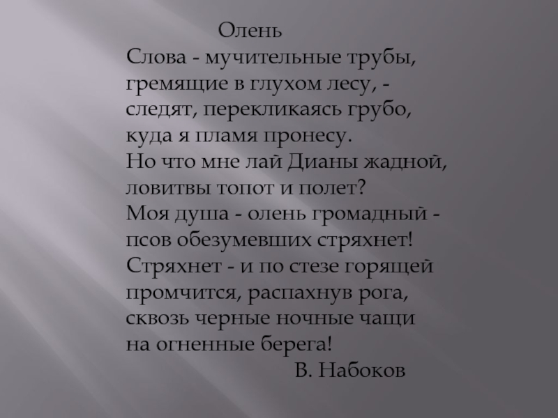 Третья строфа - кульминация - олень почувствовал опасность и уходит от беды