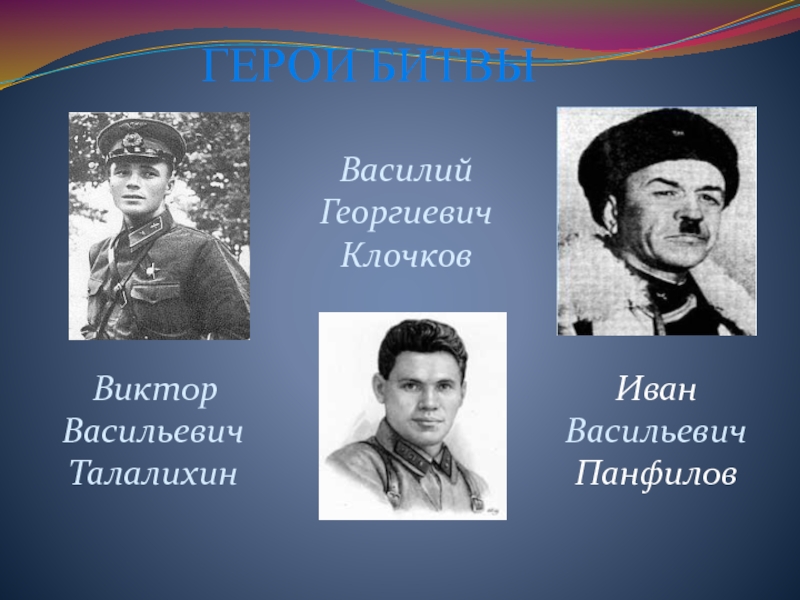 Слайд 9ГЕРОИ БИТВЫ